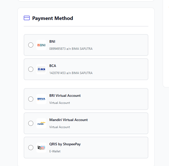 Jika sudah benar, maka di halaman checkout temen-temen akan tampil metode pembayaran yang sudah temen-temen aktifkan di menu merchant tripay: